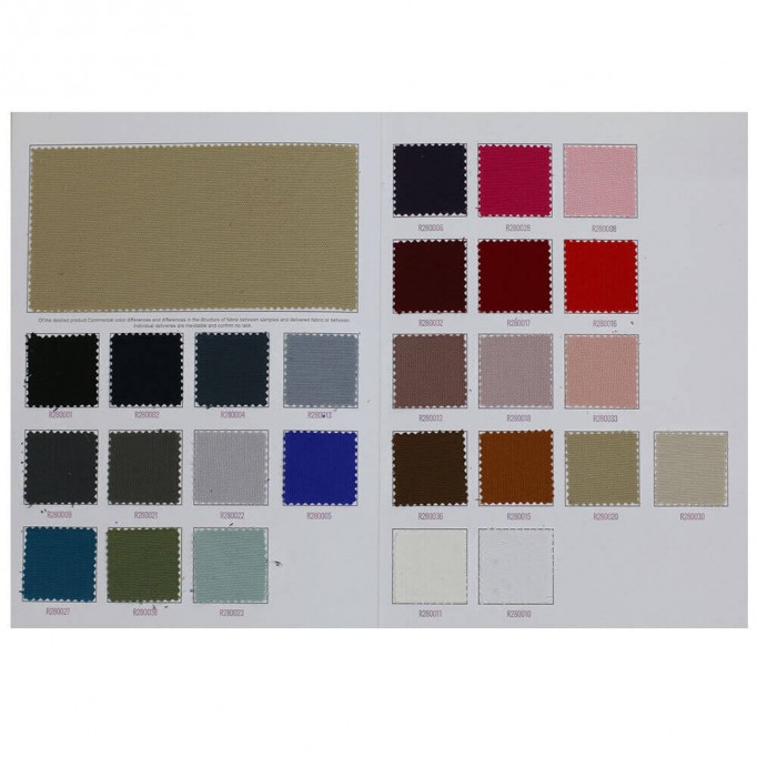 Information: Are you not sure about the color? Order here a color sample card with 32 different colors canvas fabric. These colors are available from stock all year round. Always judge the colors in sufficient daylight and try to view the color of different angles for an optimal image.